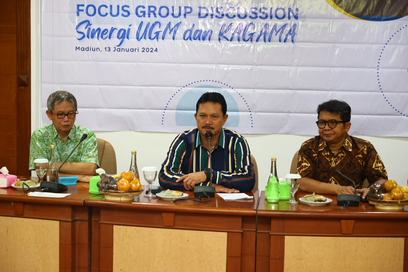 MADIUN – Kegiatan Keluarga Alumni Universitas Gadjah Mada (Kagama) di Kota Madiun berlanjut. Setelah silaturahmi dengan Wali Kota Madiun, Dr. Maidi di balai kota, Jumat (12/1) malam, kegiatan berlanjut dialog, Sabtu (13/1) pagi. Dialog berkonsep sinergi UGM dan Kagama: World Class University Focus Group Discuss yang berlangsung di Pusdik Perhutani tersebut juga dibuka Wali Kota Madiun, Dr. Maidi.