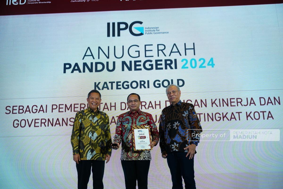 Penghargaan ini diberikan oleh Indonesia Institute Publik Governance (IIPG). Pj Wali Kota Madiun, Eddy Supriyanto pun hadir secara langsung untuk menerima piala penghargaan dari Ketua IIP di Hotel Aryaduta Menteng, Jakarta, Kamis (5/9/2024).
