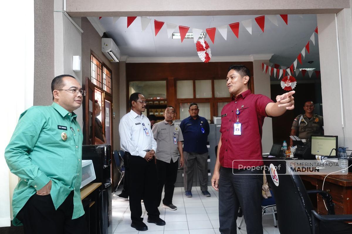 Dalam kunjungan tersebut, Pj wali kota tampak mengunjungi satu per satu kantor yang berada di lingkup Balai Kota Madiun itu. Kemudian, menyalami para pegawai. Juga, memantau setiap sudut ruangan.