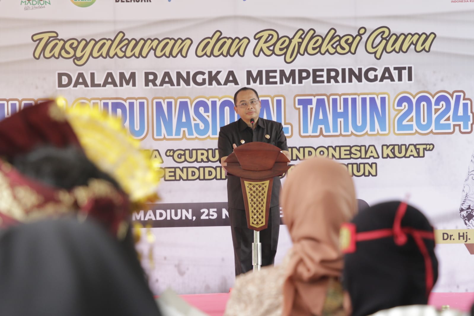 Pada kesempatan tersebut, Pj Wali Kota Madiun, Eddy Supriyanto, memberikan sambutan yang menyentuh hati mengenai pentingnya peran guru dalam pembangunan karakter dan moral bangsa.