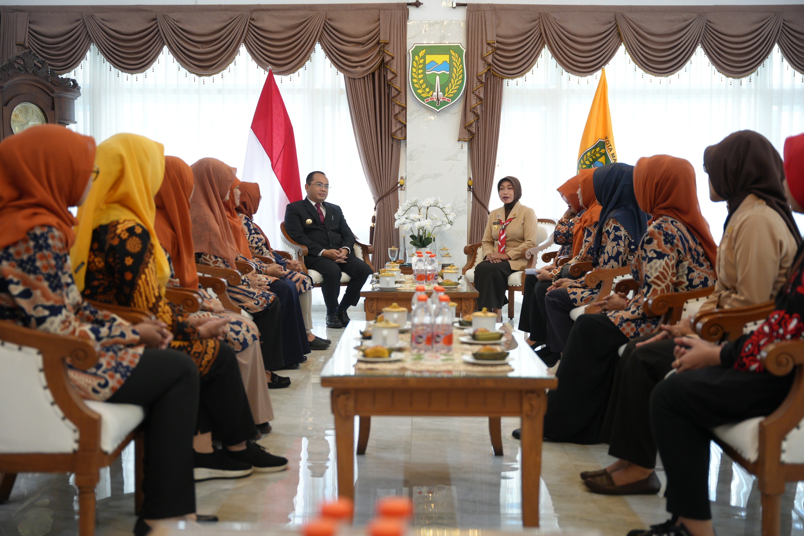 MADIUN - Pj Wali Kota Madiun, Eddy Supriyanto, menerima kunjungan rombongan Persatuan Wanita Olahraga Seluruh Indonesia (Perwosi) Kota Madiun di Rumah Dinas Wali Kota pada Jumat (6/12).