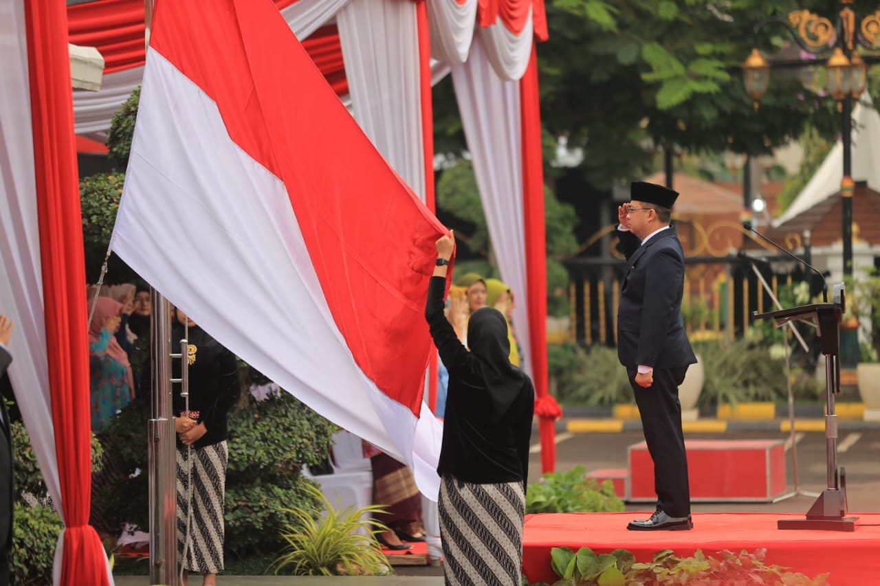MADIUN - Dalam rangka memperingati Hari Ibu ke-96, Pemerintah Kota Madiun menggelar Upacara Bendera bertema “Perempuan Menyapa, Perempuan Berdaya Menuju Indonesia Emas 2045” di halaman Balai Kota Madiun, Senin (23/12). Upacara ini dipimpin langsung oleh Pj. Wali Kota Madiun Eddy Supriyanto, dan turut dihadiri oleh Forkopimda Kota Madiun.