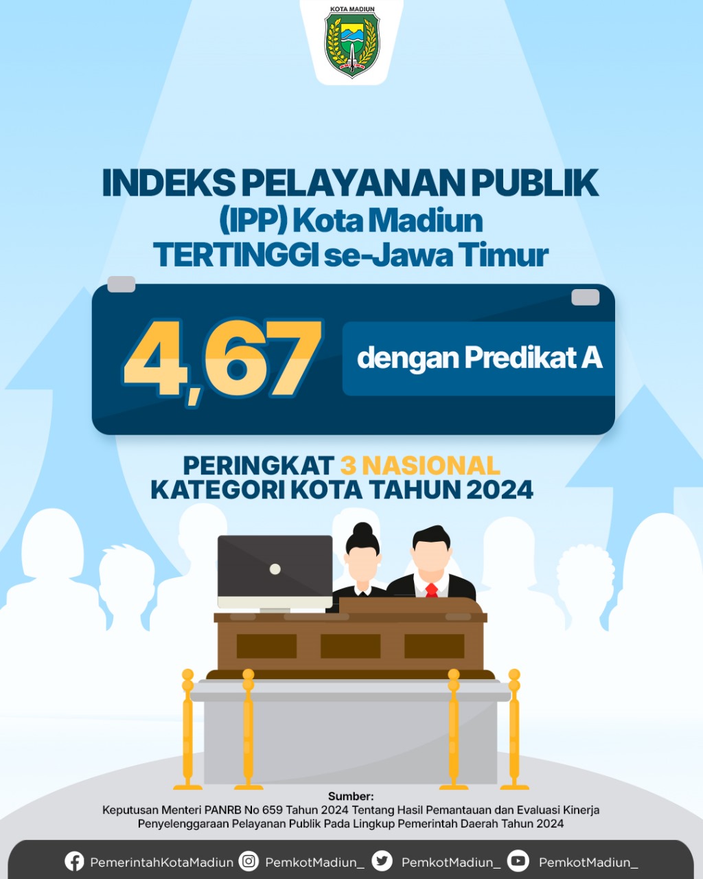 Evaluasi inipun menghasilkan Indeks Pelayanan Publik (IPP) instansi pemerintah. Tak terkecuali, bagi Kota Madiun.