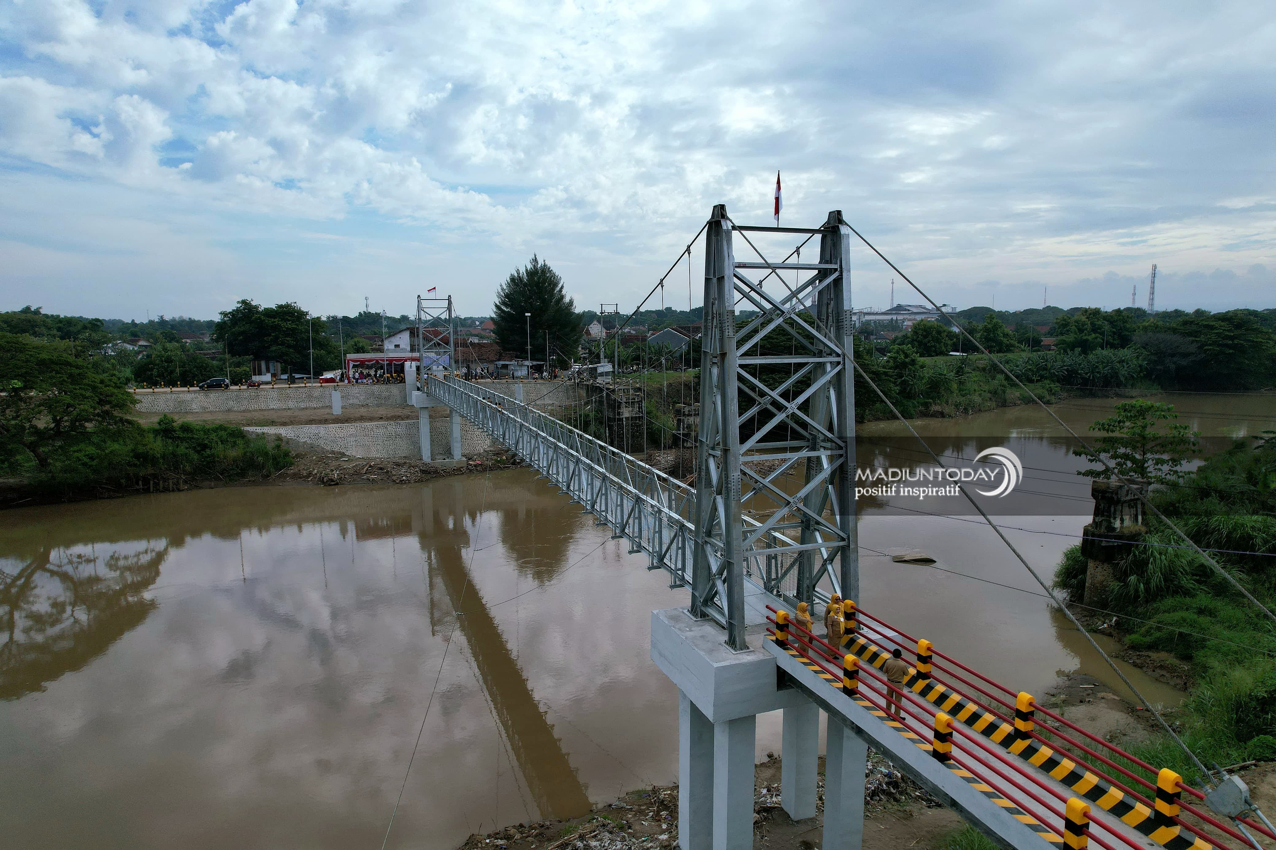 MADIUN - Pembangunan Jembatan Patihan telah rampung dan siap dioperasikan. Senin (6/1), Pj Wali Kota Madiun Eddy Supriyanto melaksanakan prosesi peresmian jembatan gantung yang dibangun dengan Dana Alokasi Khusus (DAK) APBN 2024 itu.