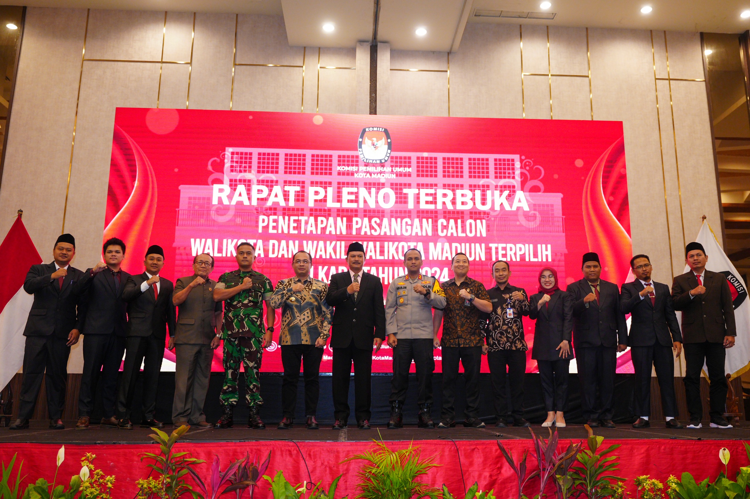 MADIUN – Satu lagi tahapan penting dalam Pemilihan Kepala Daerah (Pilkada) telah terlewati. KPU Kota Madiun baru saja melaksanakan Penetapan Pasangan Wali Kota dan Wakil Wali Kota Madiun Terpilih Pilkada 2024. Yakni, Pasangan calon (paslon) nomor urut 2, Maidi-F Bagus Panuntun. Penetapan paslon terpilih melalui Rapat Pleno Terbuka tersebut berlangsung di Sun City Hotel, Kamis (9/1). Penetapan dihadiri berbagai pihak. Tak terkecuali, Pj Wali Kota Madiun, Eddy Supriyanto.