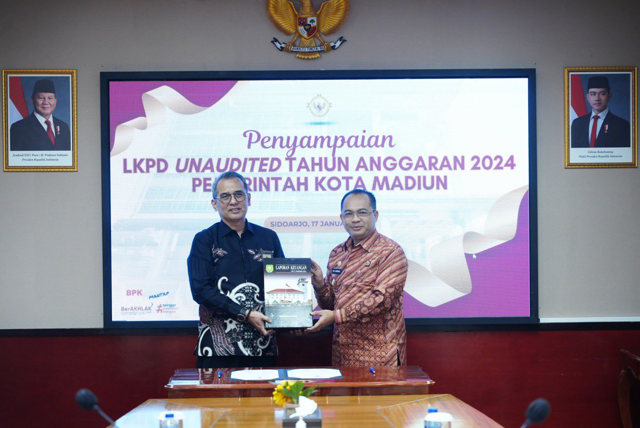 "Saya dengan bangga melaporkan bahwa Pemerintah Kota Madiun kembali berhasil menyerahkan Laporan Keuangan Pemerintah Kota Madiun per 31 Desember 2024 ke Badan Pemeriksa Keuangan Perwakilan Provinsi Jawa Timur dengan tepat waktu.