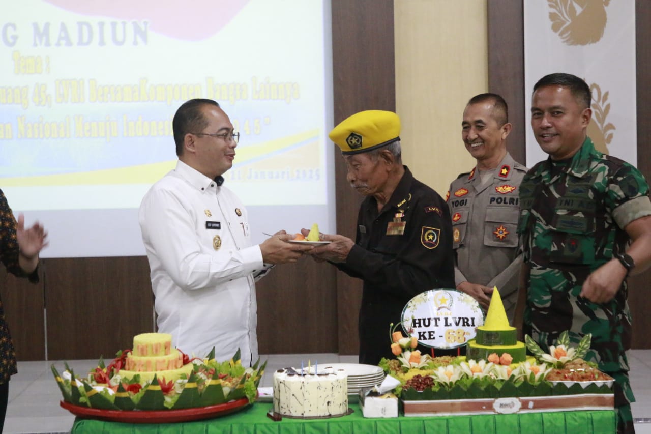 Pj Wali Kota Madiun Eddy Supriyanto yang hadir dalam kegiatan memberikan selamat kepada para veteran yang merayakan hari jadi LVRI tersebut. Semangat para veteran, lanjutnya, wajib terus berkobar mesti usia sudah tidak lagi muda. Veteran harus senantiasa menjadi contoh khususnya bagi generasi sekarang. Sebaliknya, generasi sekarang juga tidak boleh melupakan jasa-jasa veteran yang sangat luar biasa.