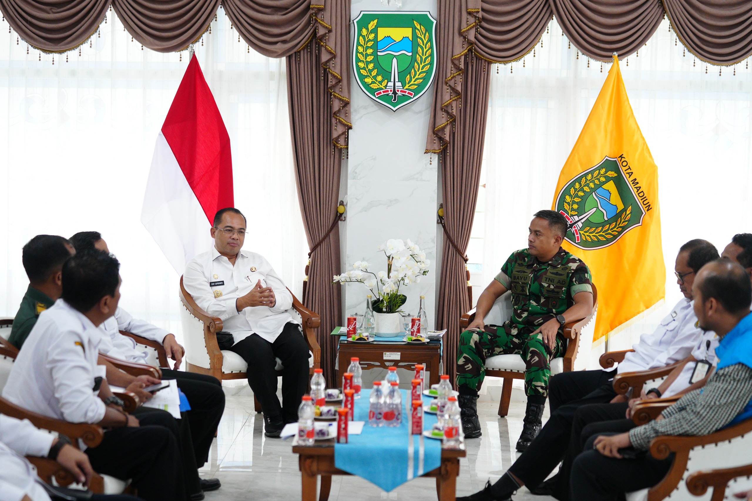 Rapat ini dihadiri oleh Pj. Wali Kota Madiun Eddy Supriyanto, Sekretaris Daerah (Sekda) Kota Madiun Soeko Dwi Handiarto, Dandim 0803/Madiun Letkol Kav Widhi Bayu Sudibyo, serta Organisasi Perangkat Daerah (OPD) pendamping terkait.