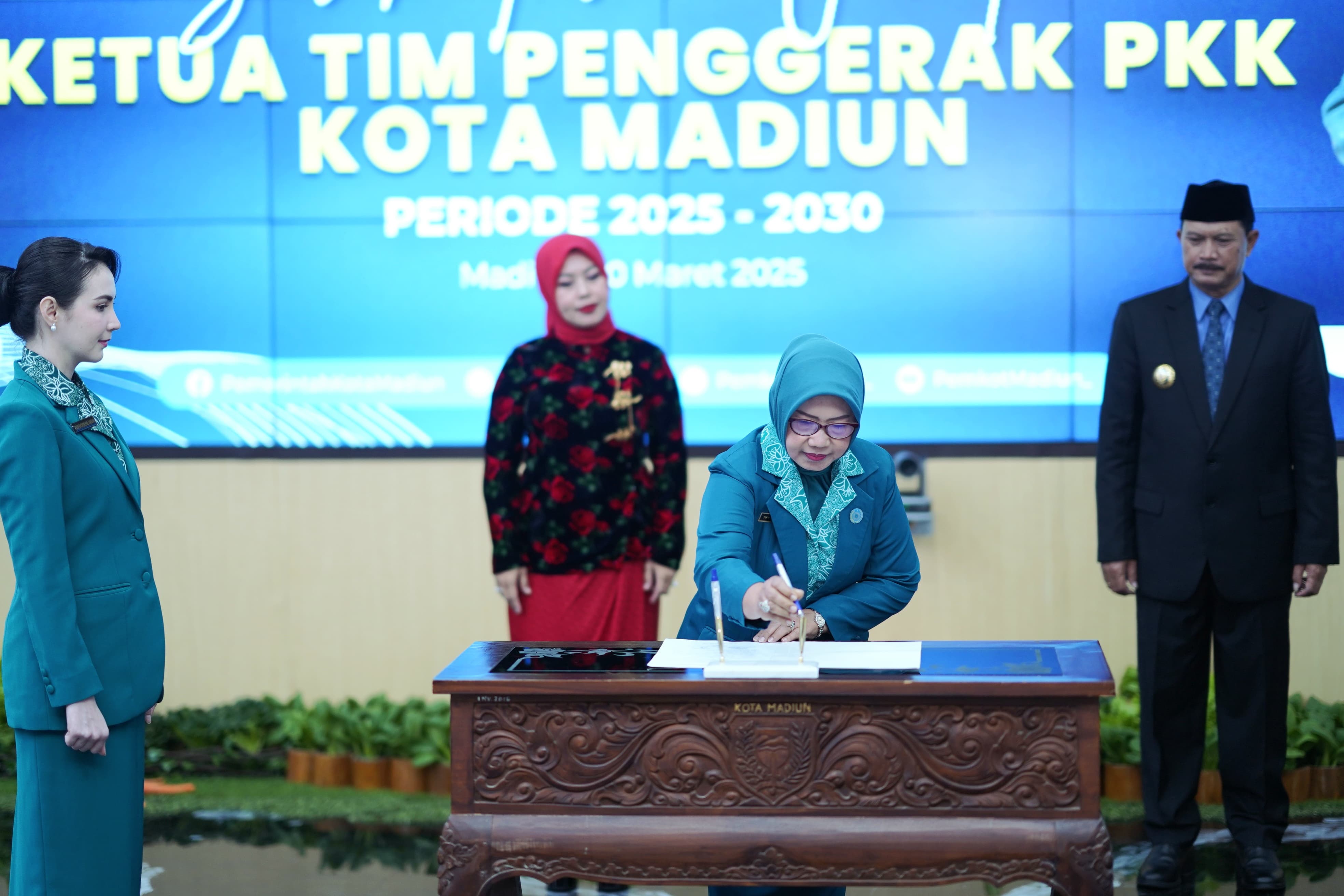 Acara tersebut berlangsung di Gedung GCIO Dinas Komunikasi Dan Informatika Kota Madiun, Kamis (20/3). Serta, dihadiri oleh Wali Kota Madiun Dr. Maidi selaku Ketua Pembina TP PKK Kota Madiun, Wakil Wali Kota Madiun F. Bagus Panuntun, Sekda Soeko Dwi Handiarto, pimpinan OPD Pemkot Madiun, dan anggota pengurus TP PKK Kota Madiun. Tampak hadir pula Ketua TP PKK Provinsi Jawa Timur Arumi Bachsin Emil Dardak.