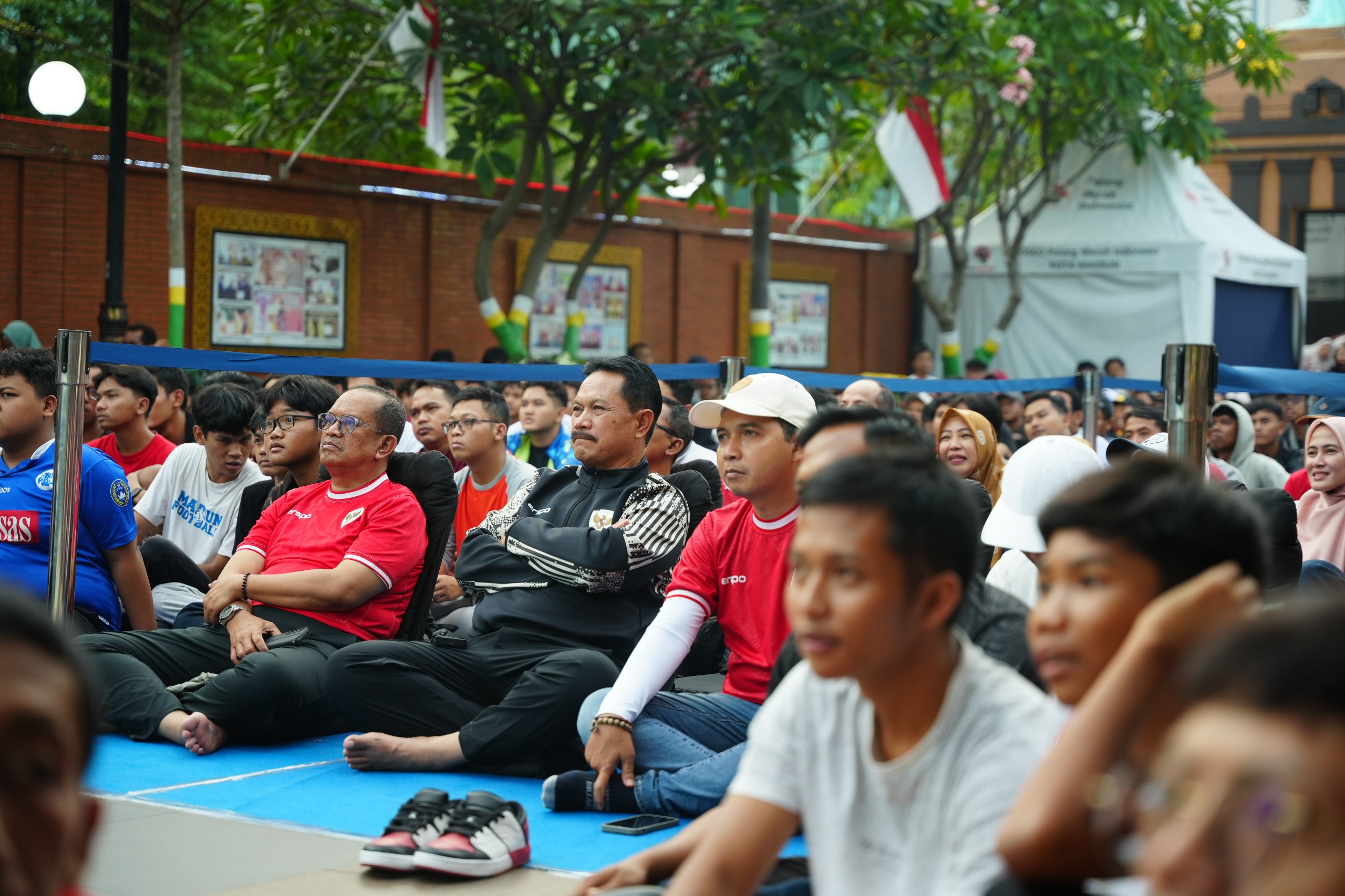 Acara nonton bareng ini dihadiri oleh Wali Kota Madiun Dr. Maidi, Wakil Wali Kota Madiun F. Bagus Panuntun, Sekretaris Daerah Kota Madiun, Kepala OPD se- Kota Madiun, serta masyarakat yang antusias memberikan dukungan penuh kepada skuad Garuda.