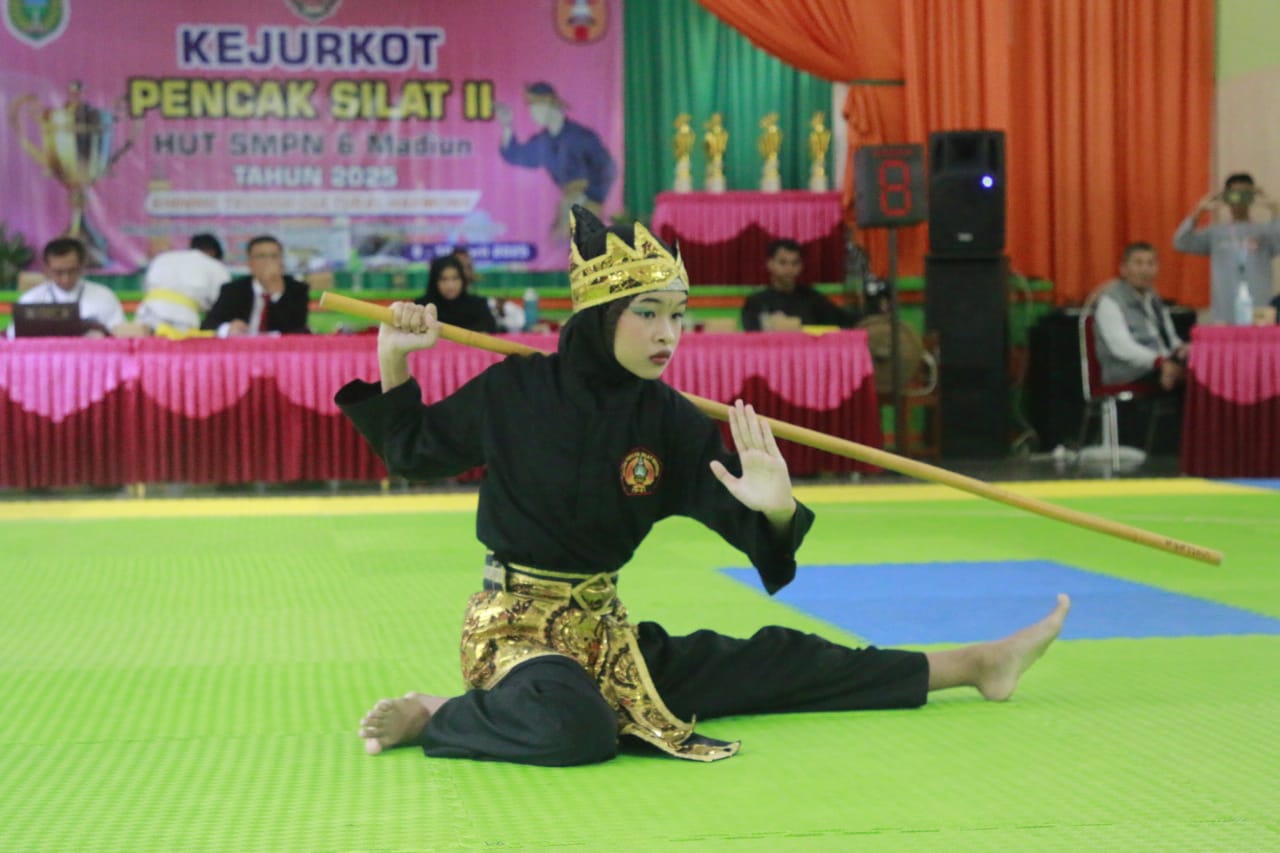 “Kegiatan ini bukan hanya untuk mencari juara, tetapi juga sebagai wujud kecintaan kami terhadap budaya dan olahraga pencak silat, sekaligus menjadi bagian dari rangkaian peringatan HUT ke-46 SMP Negeri 6 Kota Madiun,” ujar Kepala SMPN 6 Kota Madiun Emi Munawaroh, Rabu (9/4).