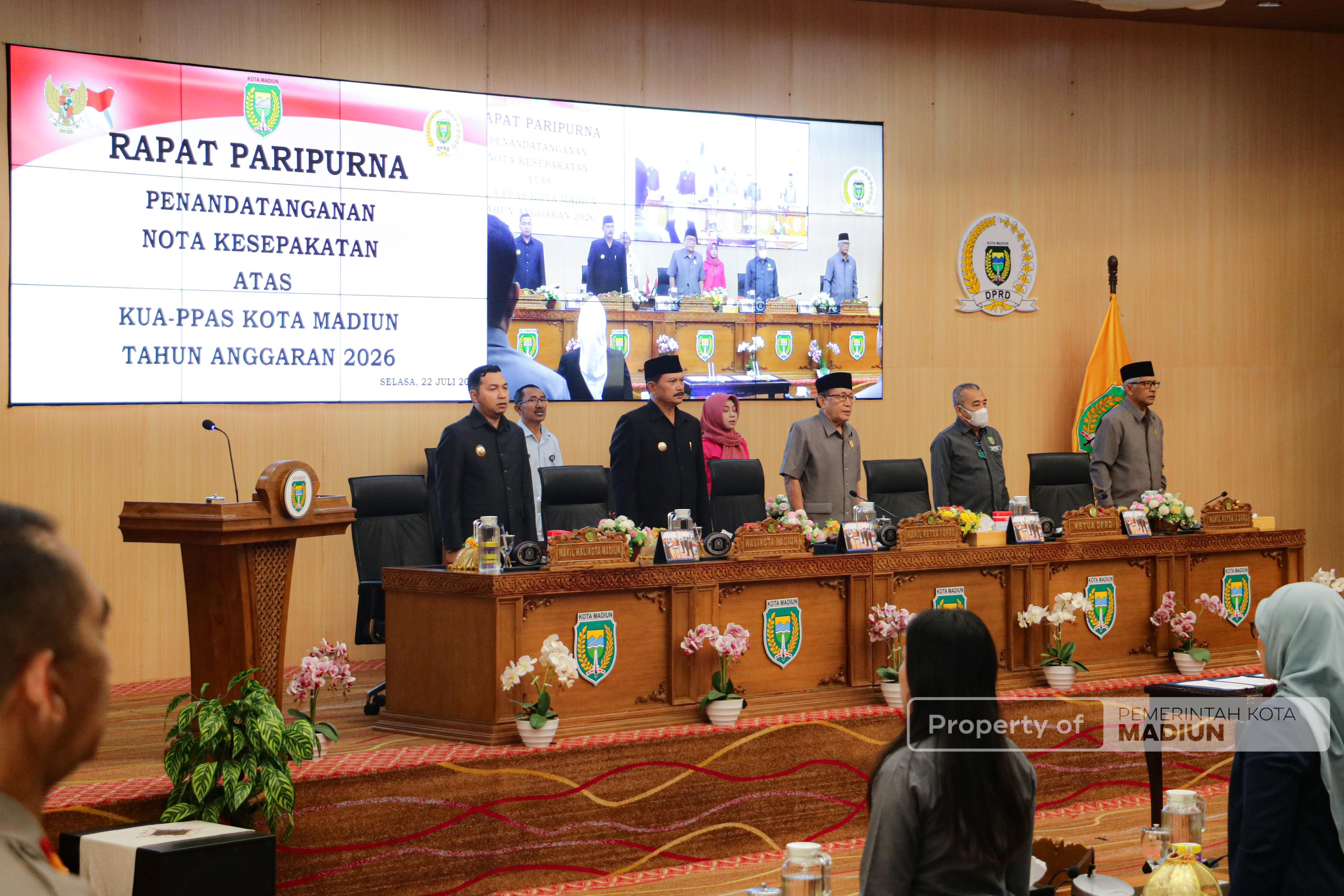 MADIUN – Pemerintah Kota Madiun dan DPRD Kota Madiun resmi menyepakati Kebijakan Umum Anggaran dan Prioritas Plafon Anggaran Sementara (KUA-PPAS) APBD 2026. Penandatanganan nota kesepakatan dilaksanakan dalam rapat paripurna, Selasa (22/7).