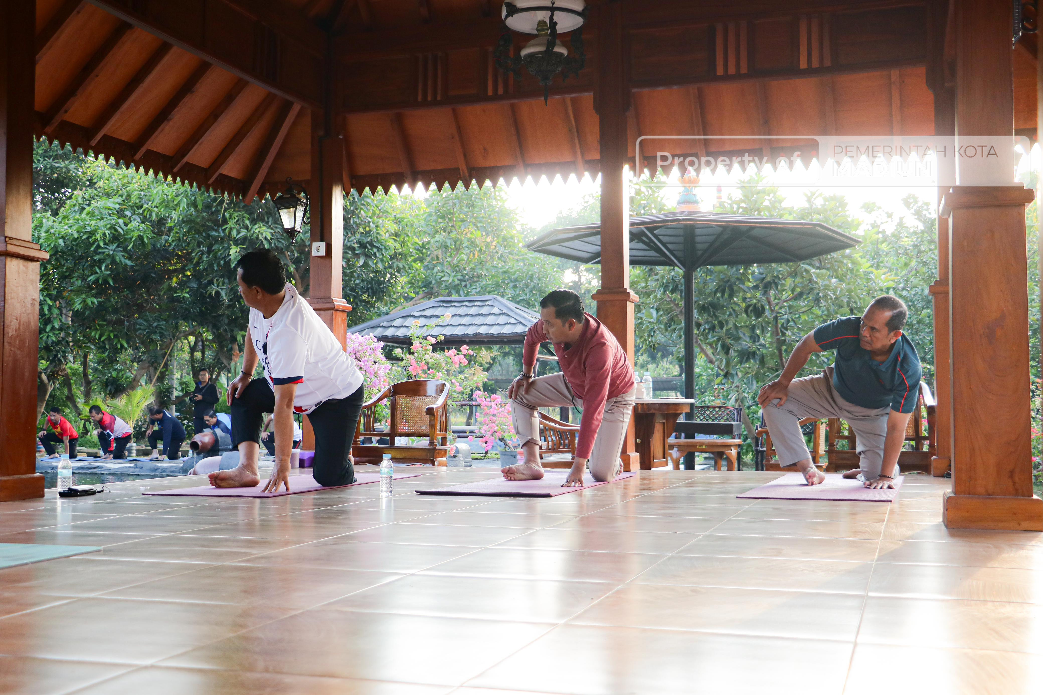 “Dengan yoga ini kita menjaga kesehatan. Kalau kita sehat, pasti kerja kita akan tuntas,” ujar wali kota.