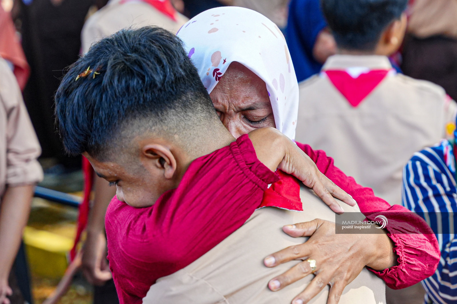 MADIUN – Suasana hening menyelimuti Ngrowo Bening, Jumat (12/9). Ratusan siswa SMP hingga SMK yang semula berbaris, perlahan bergerak mendekati orang tua mereka. Dengan kepala tertunduk, satu per satu anak bersimpuh, mencium tangan, dan bersungkeman.
