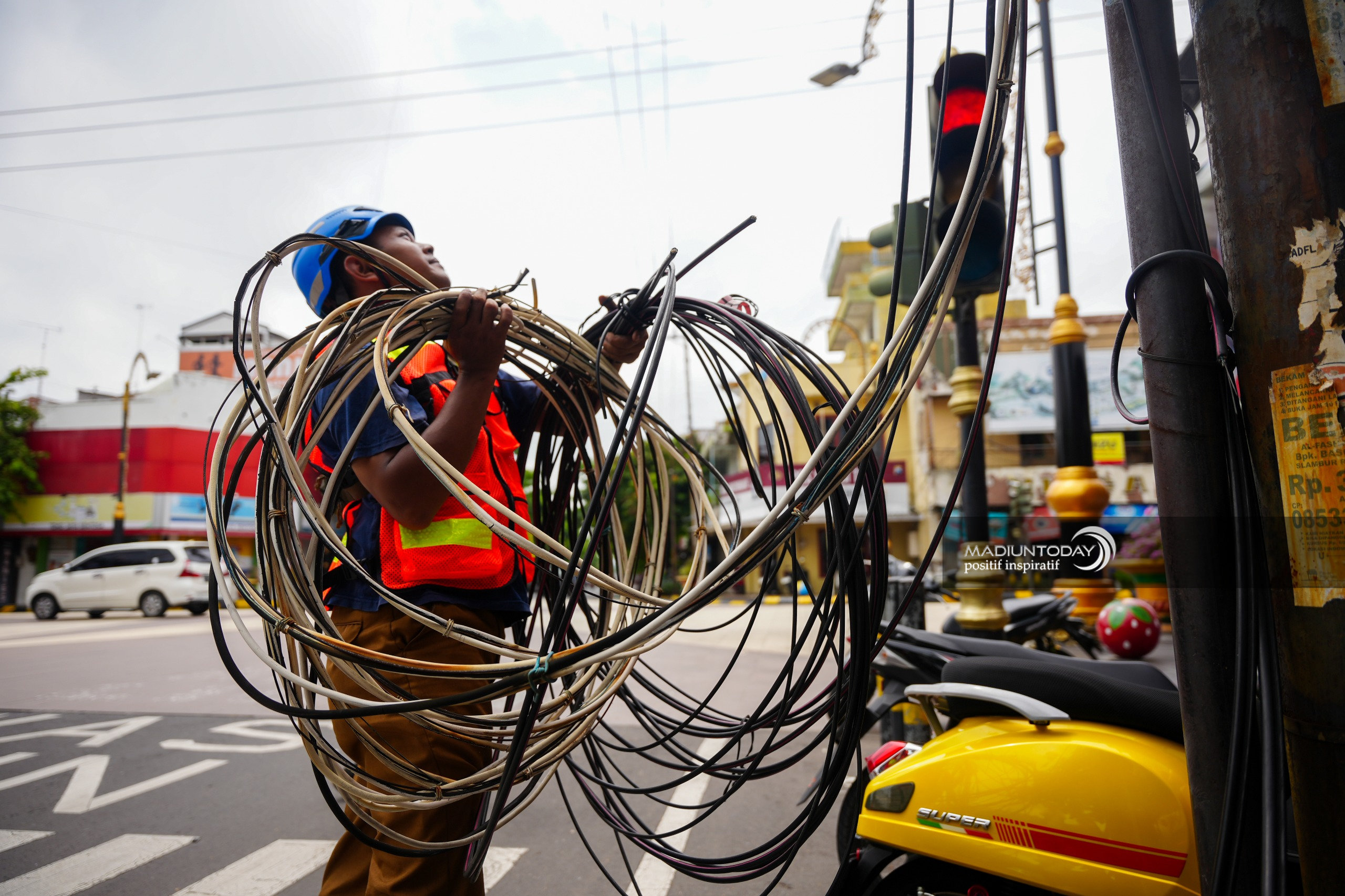 Kabel Udara di Jalan Protokol Madiun Mulai Diputus, Target Bersih Sebelum Lebaran
