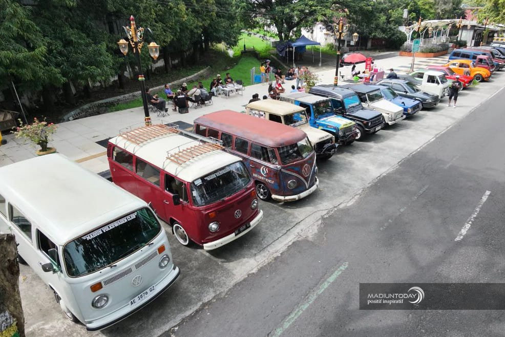 MADIUN - Jalan Rimba Darma disulap menjadi arena berkumpulnya mobil vintage, klasik, dan retro pada Selasa (172) dalam Madiun Vintage and Retro Cars Meet Up. Sebanyak 45 kendaraan dari Madiun, Ngawi, Ponorogo, hingga Magetan ikut meramaikan pertemuan lintas hobi ini.