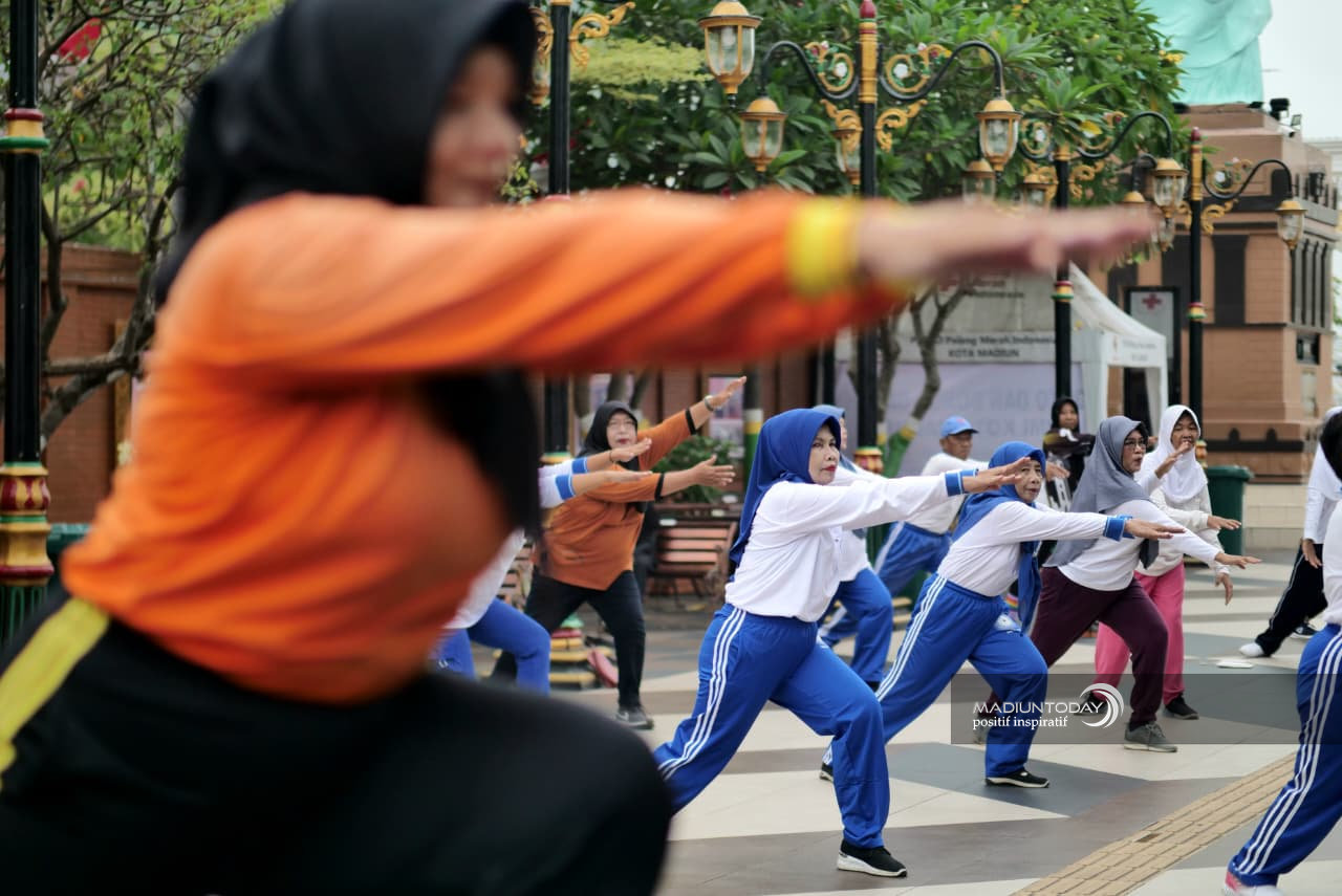 MADIUN - Senam terapi Ling Tien Kung menjadi salah satu agenda dalam rangkaian Ramadan Bugar 2026 yang digelar Dinas Kebudayaan, Pariwisata, Kepemudaan dan Olahraga (Disbudparpora) Kota Madiun di Pahlawan Street Center (PSC), Minggu (22/2). Kegiatan tersebut diikuti puluhan warga yang ingin tetap menjaga kebugaran selama bulan suci Ramadan.
